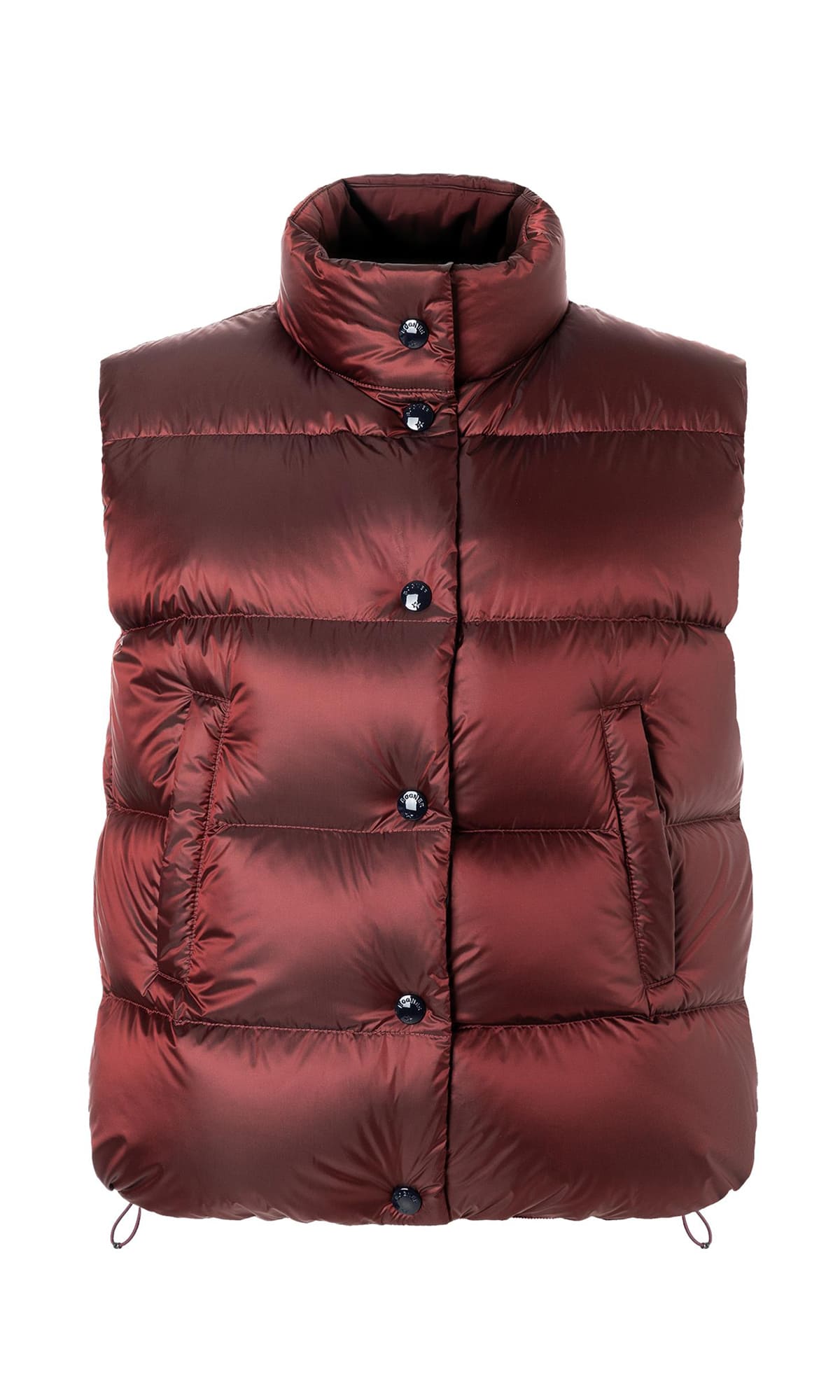 Красный стеганый жилет Orely выполнен из ткани с водоотталкивающей отделкой и наполнителем из натурального утиного пуха. Дополнен воротником-стойкой, прорезными карманами и планкой на кнопках. Отлично подходит для многослойных образов.