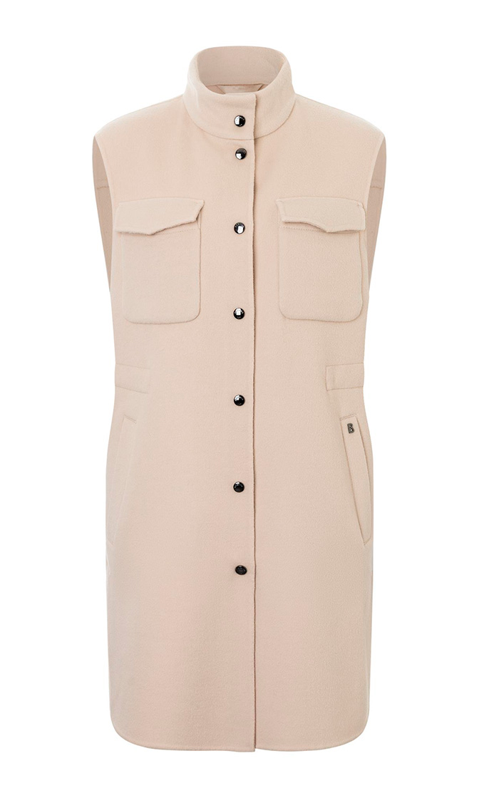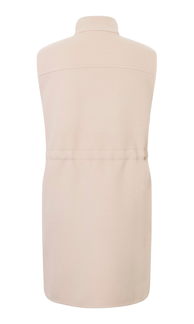 Бежевый жилет Adria выполнен из натуральной шерсти. Дополнен воротником-стойкой, накладными и прорезными карманами, кулиской на талии, а также закругленными разрезами по бокам. Застегивается на кнопки. Такой стильный жилет добавит элегантный штрих в повседневный образ.