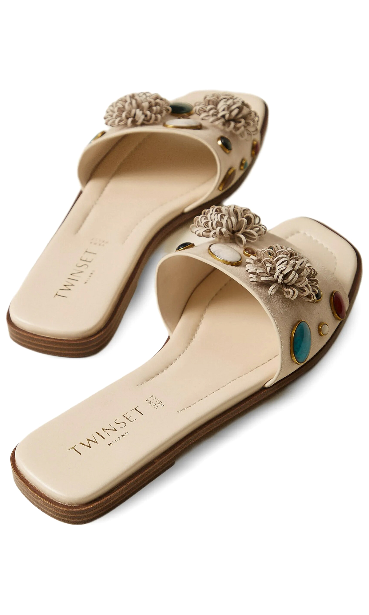Замшевые шлепанцы с декоративными камнями