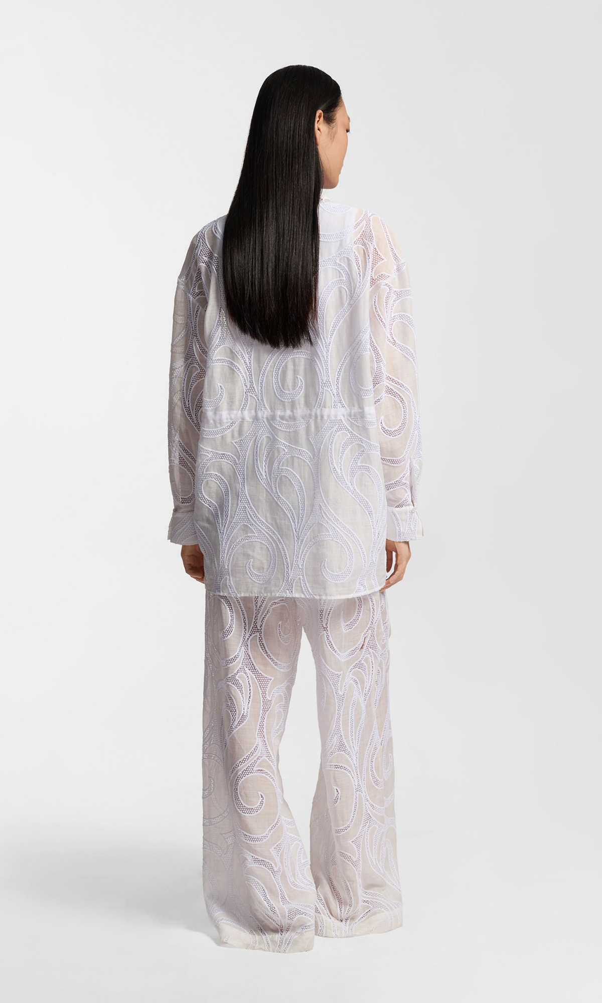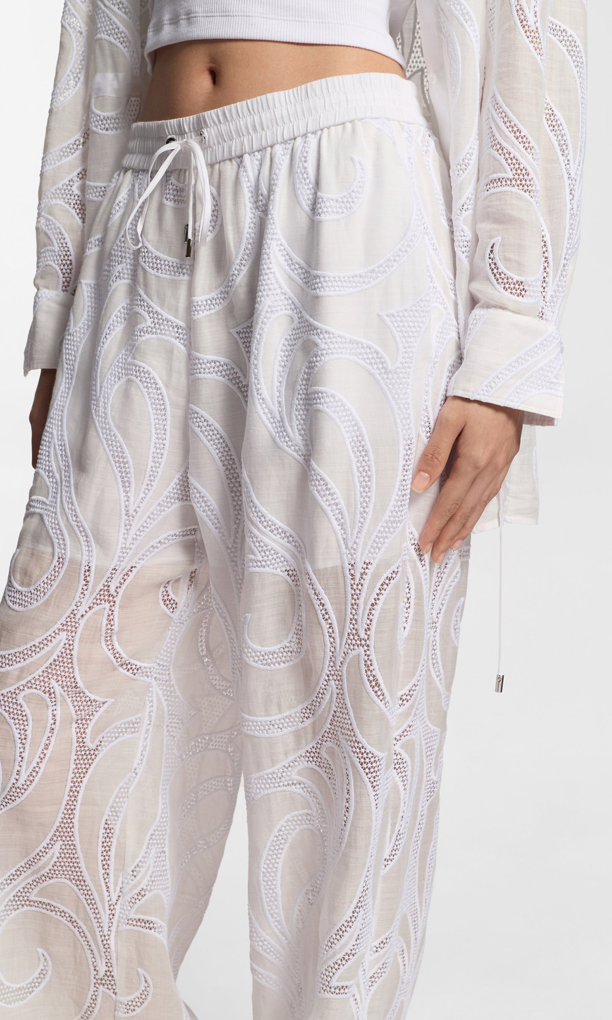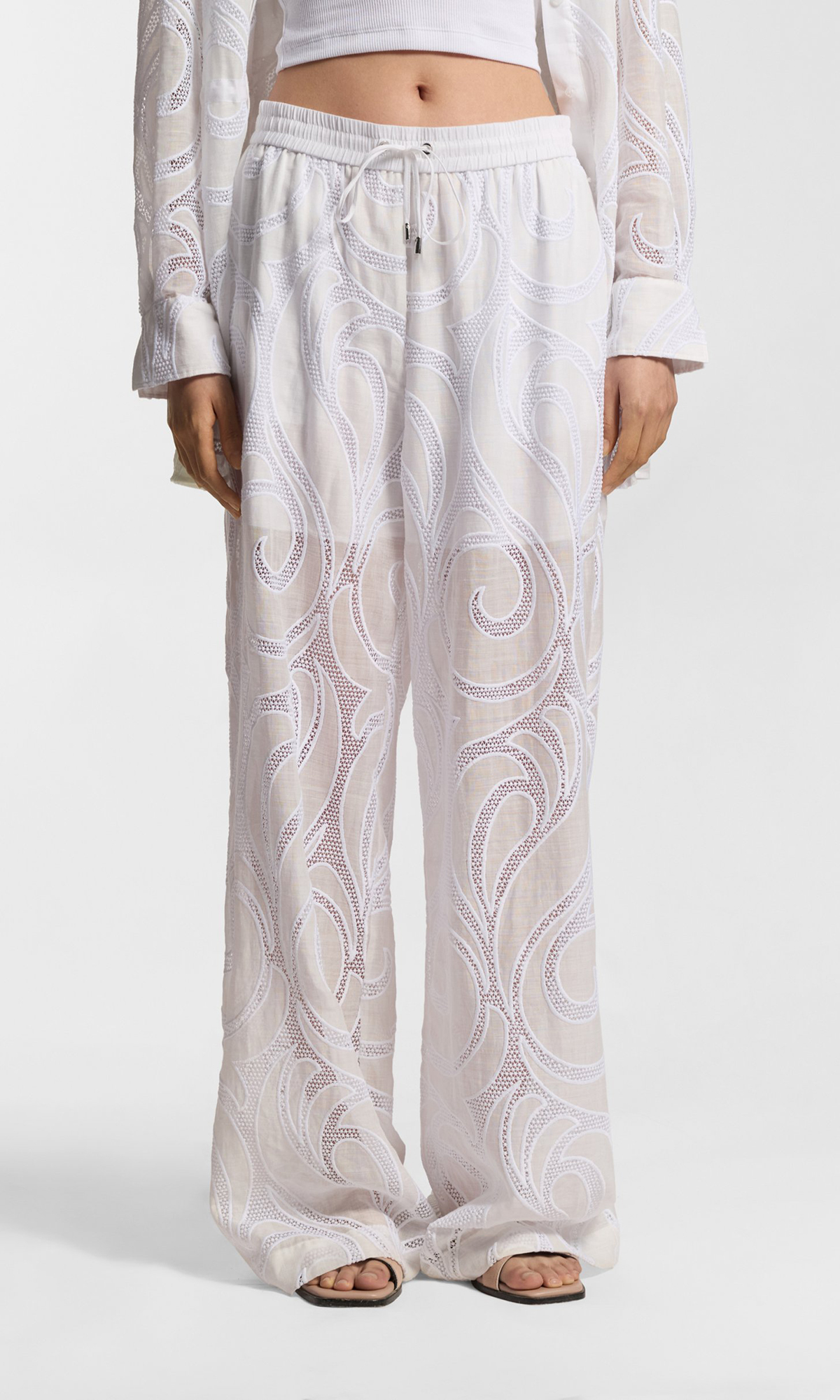 Брюки с вышивкой из рами
