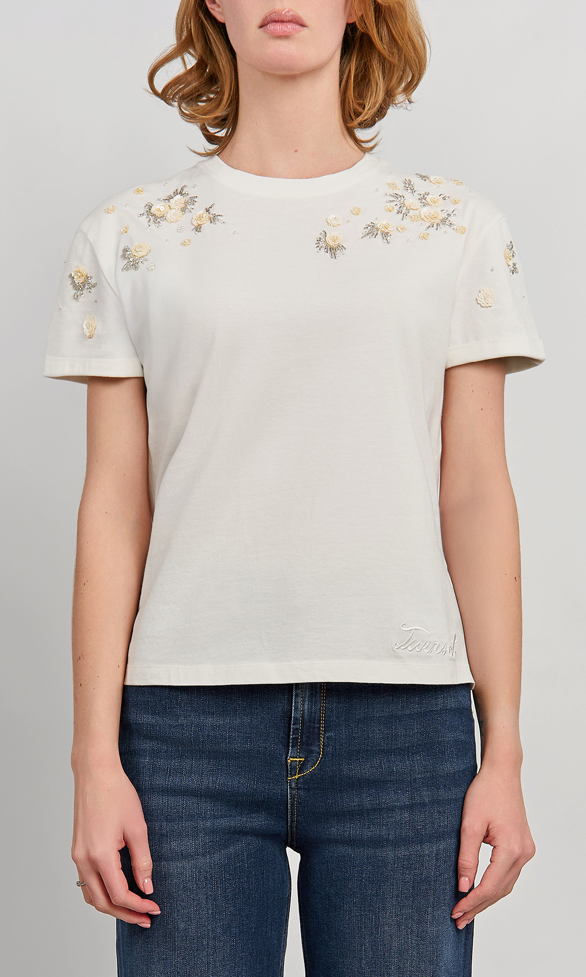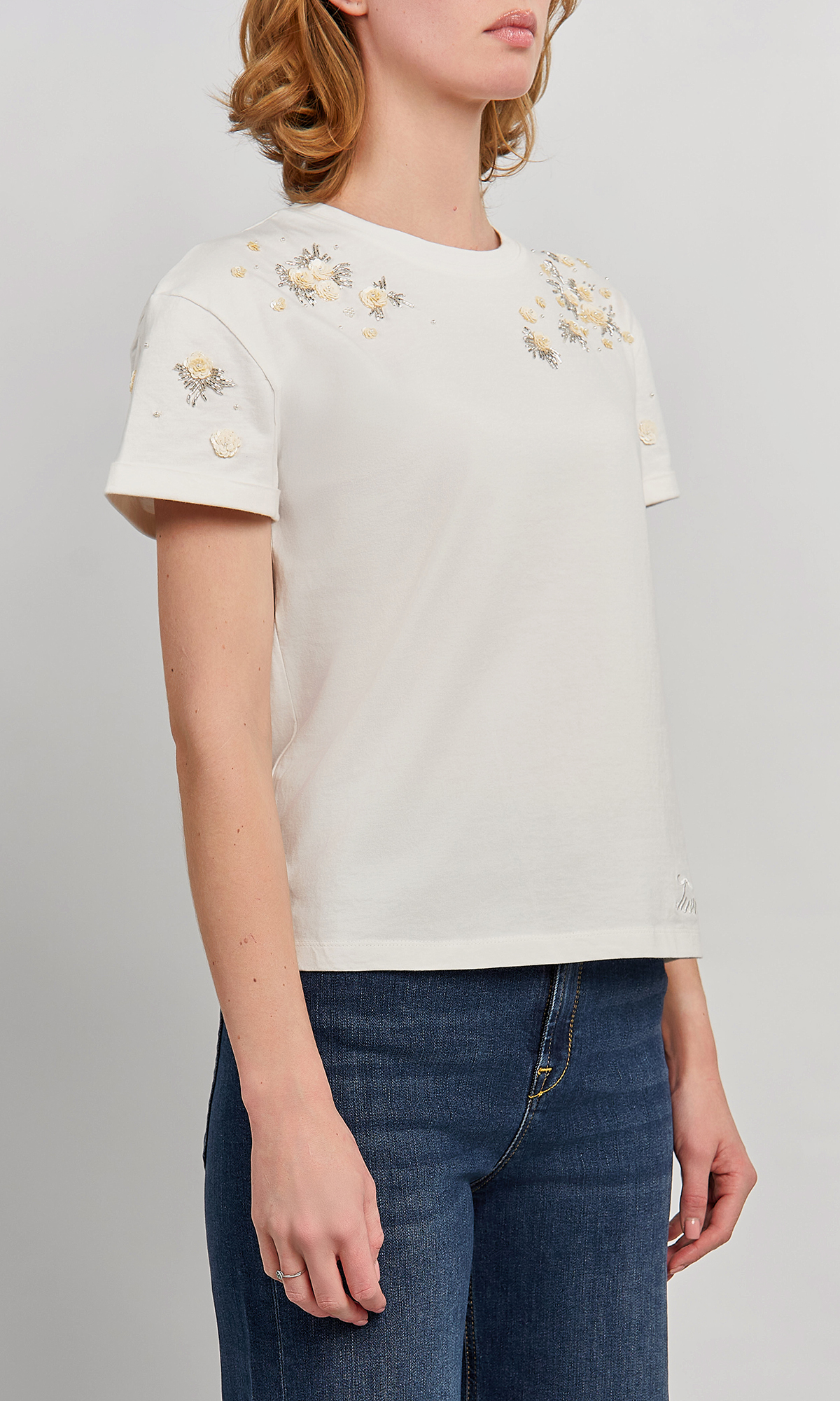Футболка с бисером и аппликацией