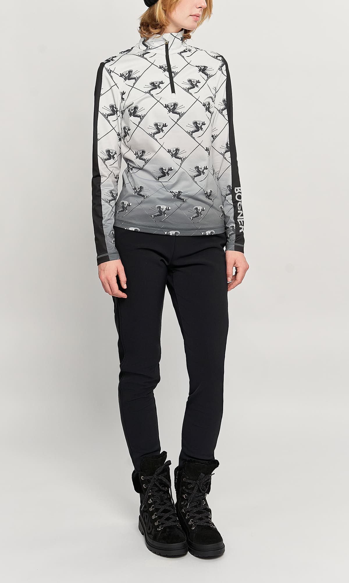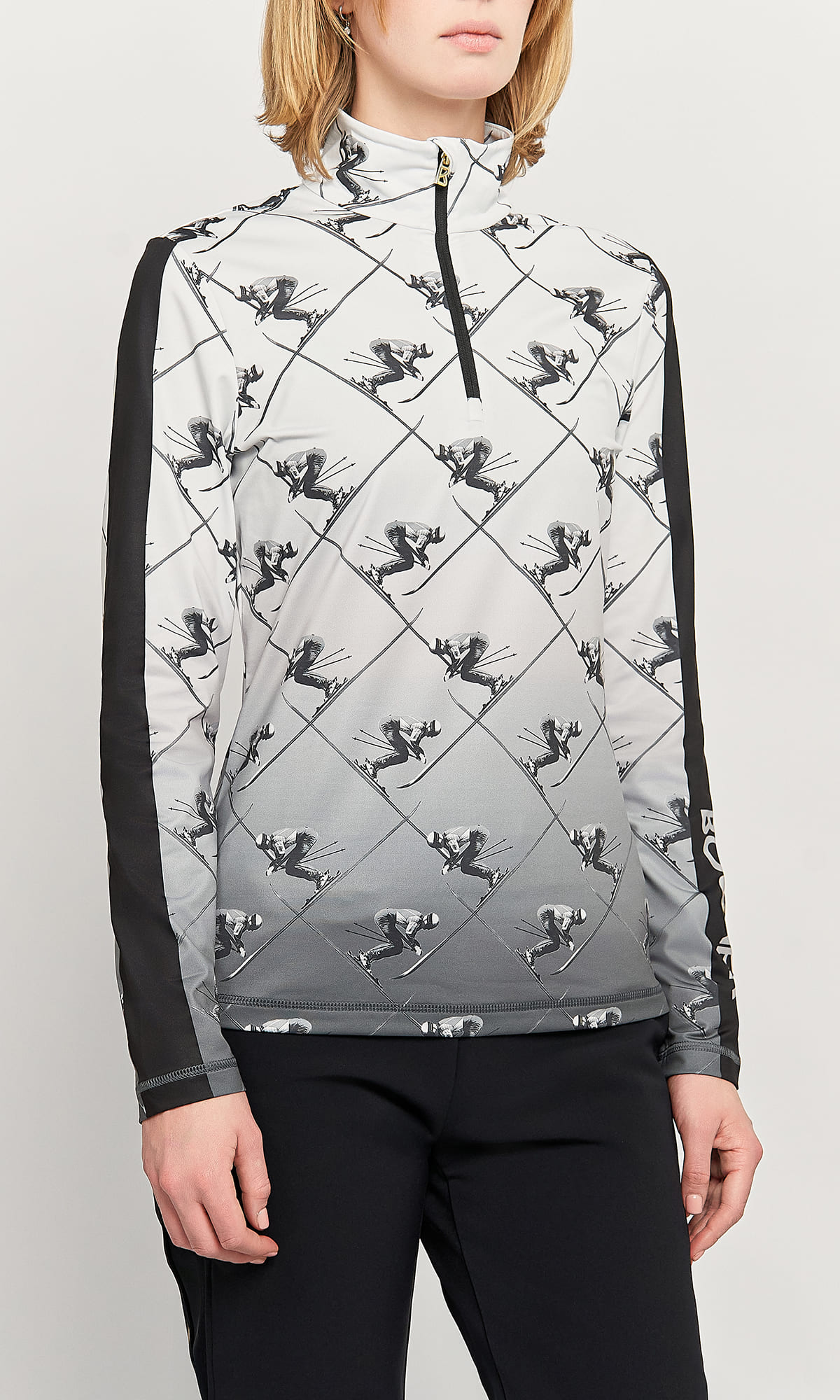 - Сплошной черно-белый принт с лыжником