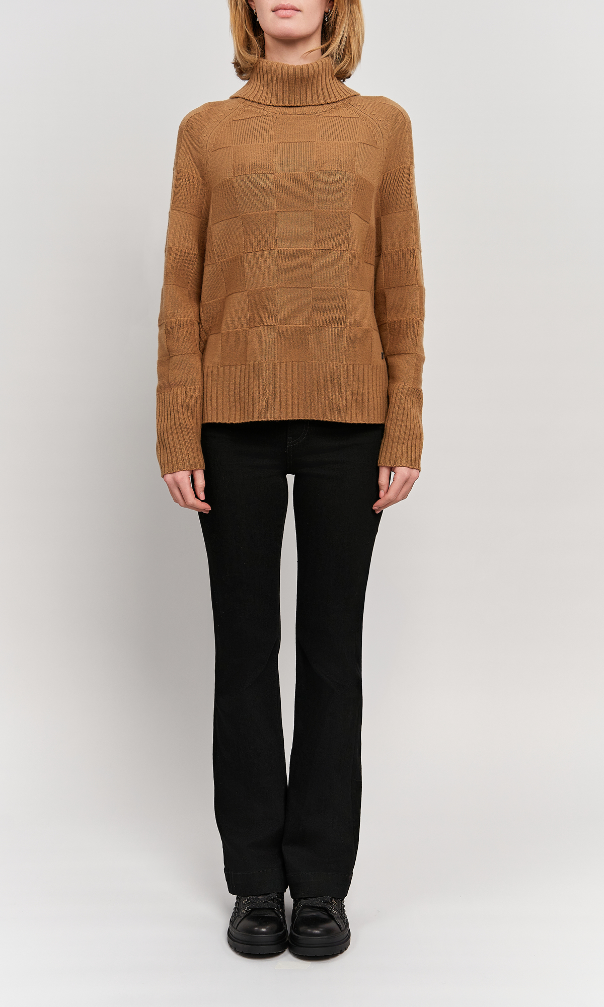 - Свитер классического кроя с узором в клетку