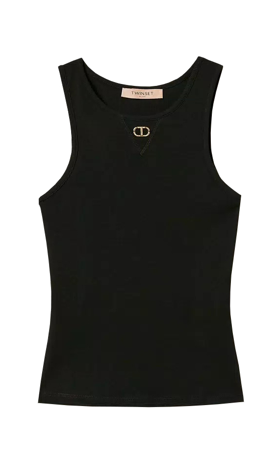 Топ в рубчик с металлическим логотипом