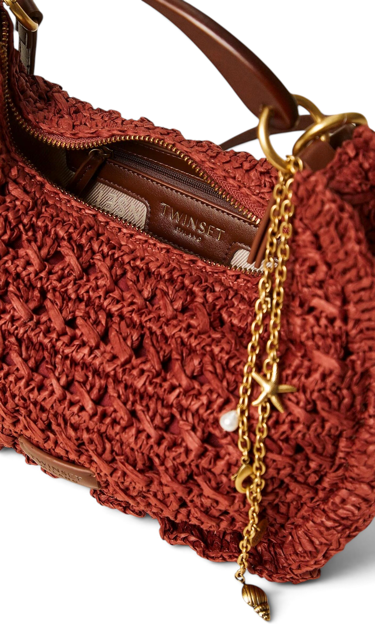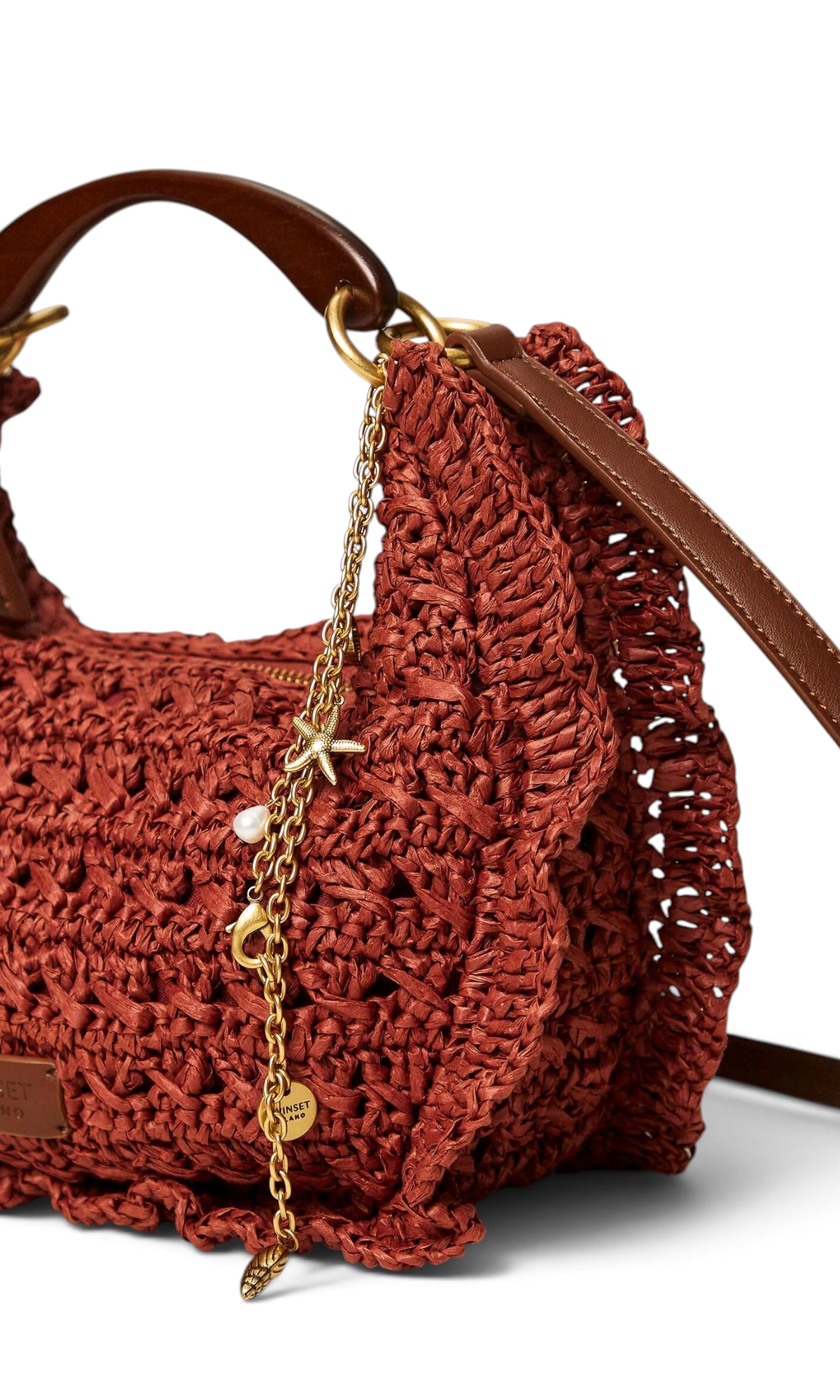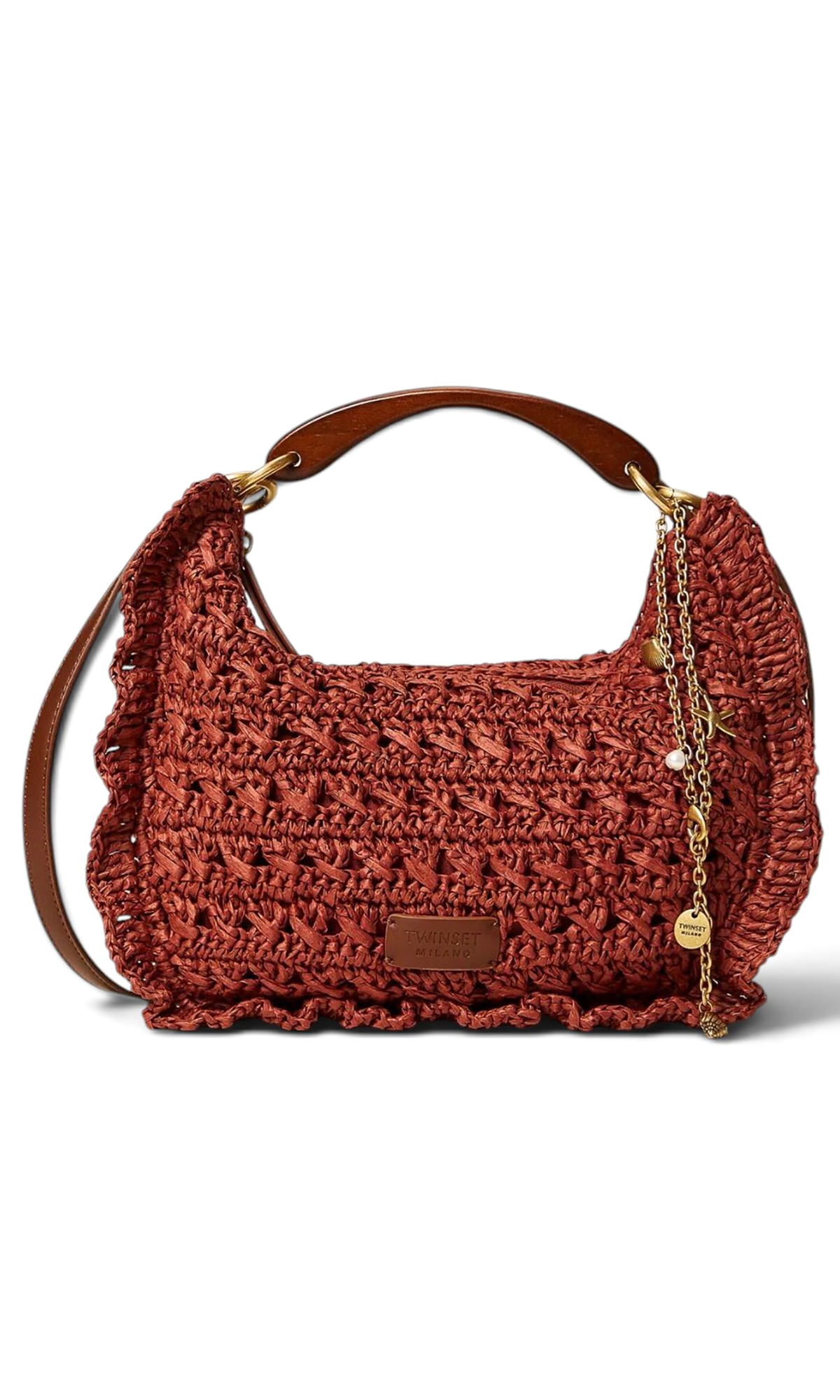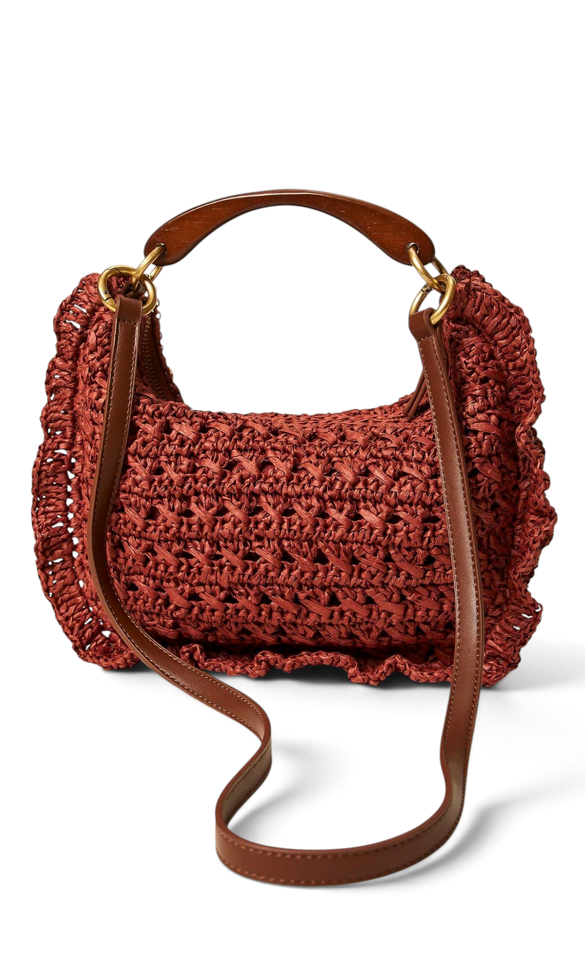 Сумка из рафии с деревянной ручкой
