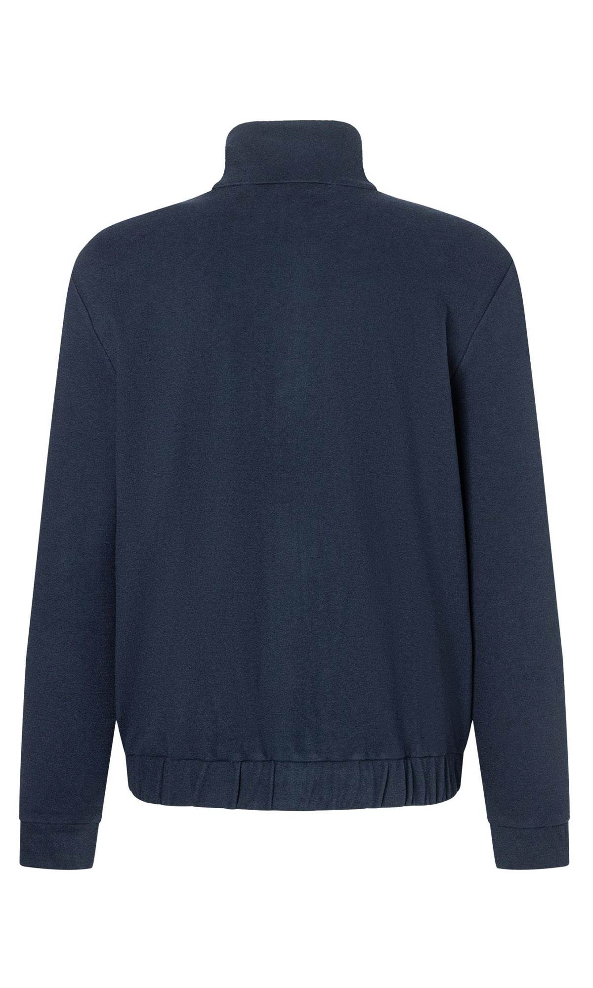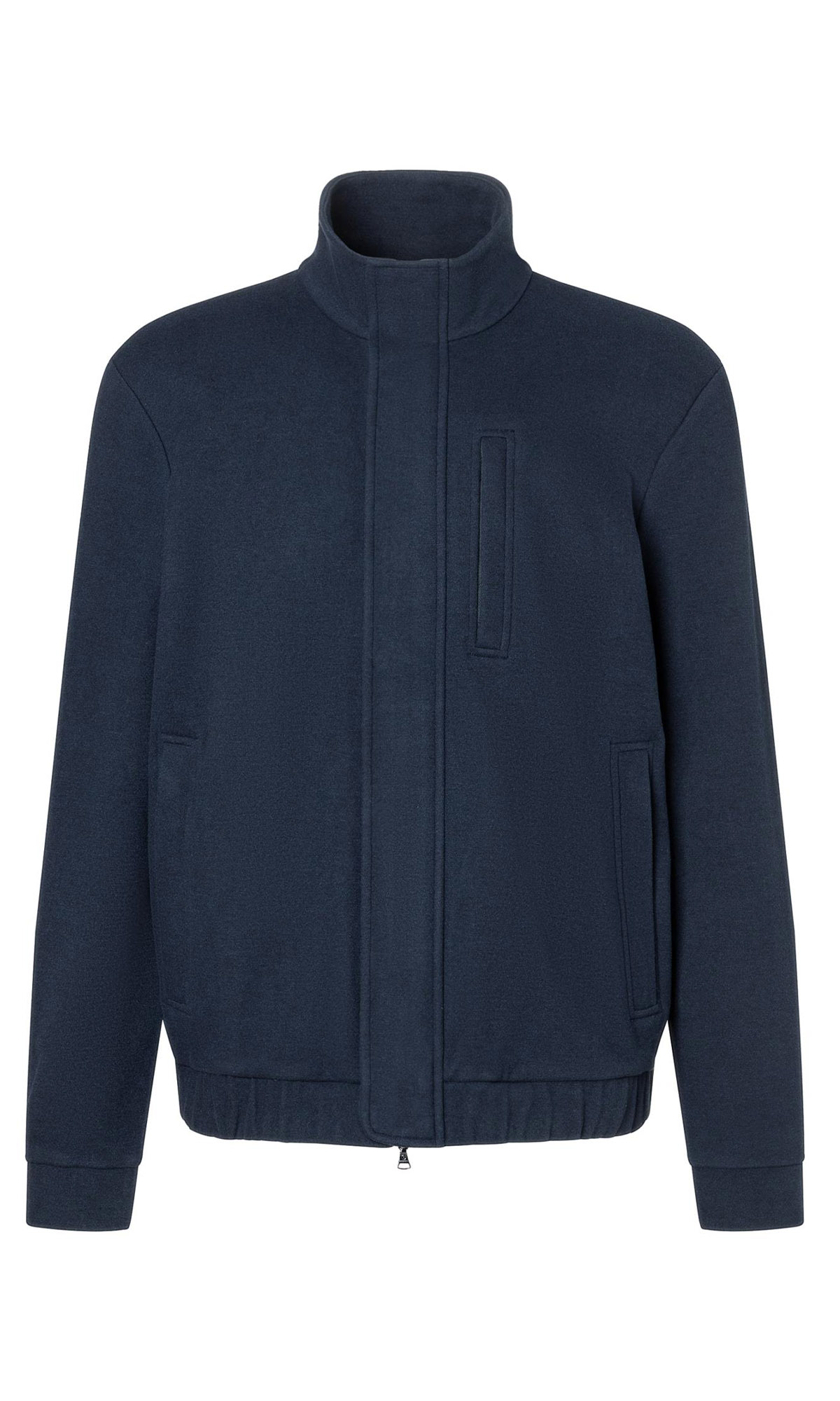 Темно-синяя куртка Meville выполнена из плотной ткани с добавлением вискозы и натуральной шерсти. Дополнена воротником-стойкой, двухзамковой молнией с планкой на кнопках, тремя прорезными карманами на молнии и эластичным подолом. Лаконичная куртка отлично подойдет для повседневных образов.