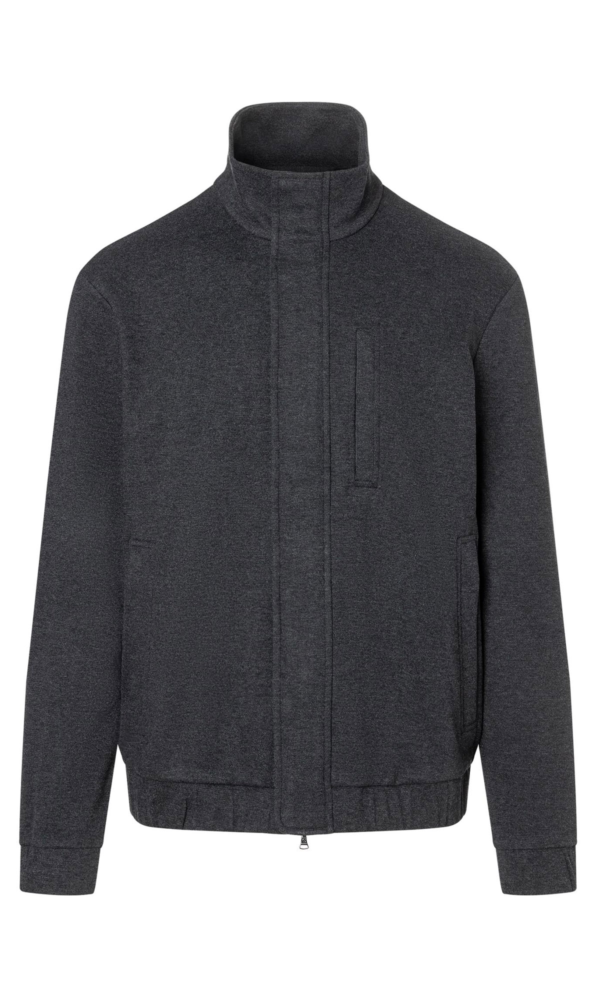 Серая куртка Meville выполнена из плотной ткани с добавлением вискозы и натуральной шерсти. Дополнена воротником-стойкой, двухзамковой молнией с планкой на кнопках, тремя прорезными карманами на молнии и эластичным подолом. Лаконичная куртка отлично подойдет для повседневных образов.
