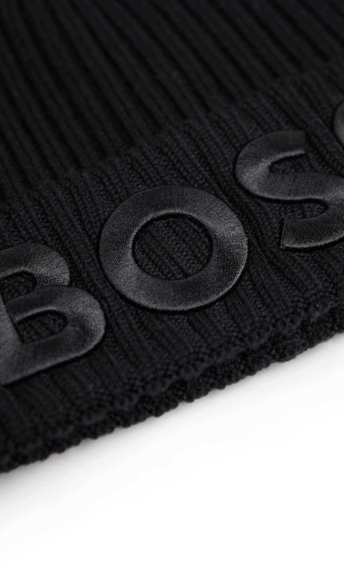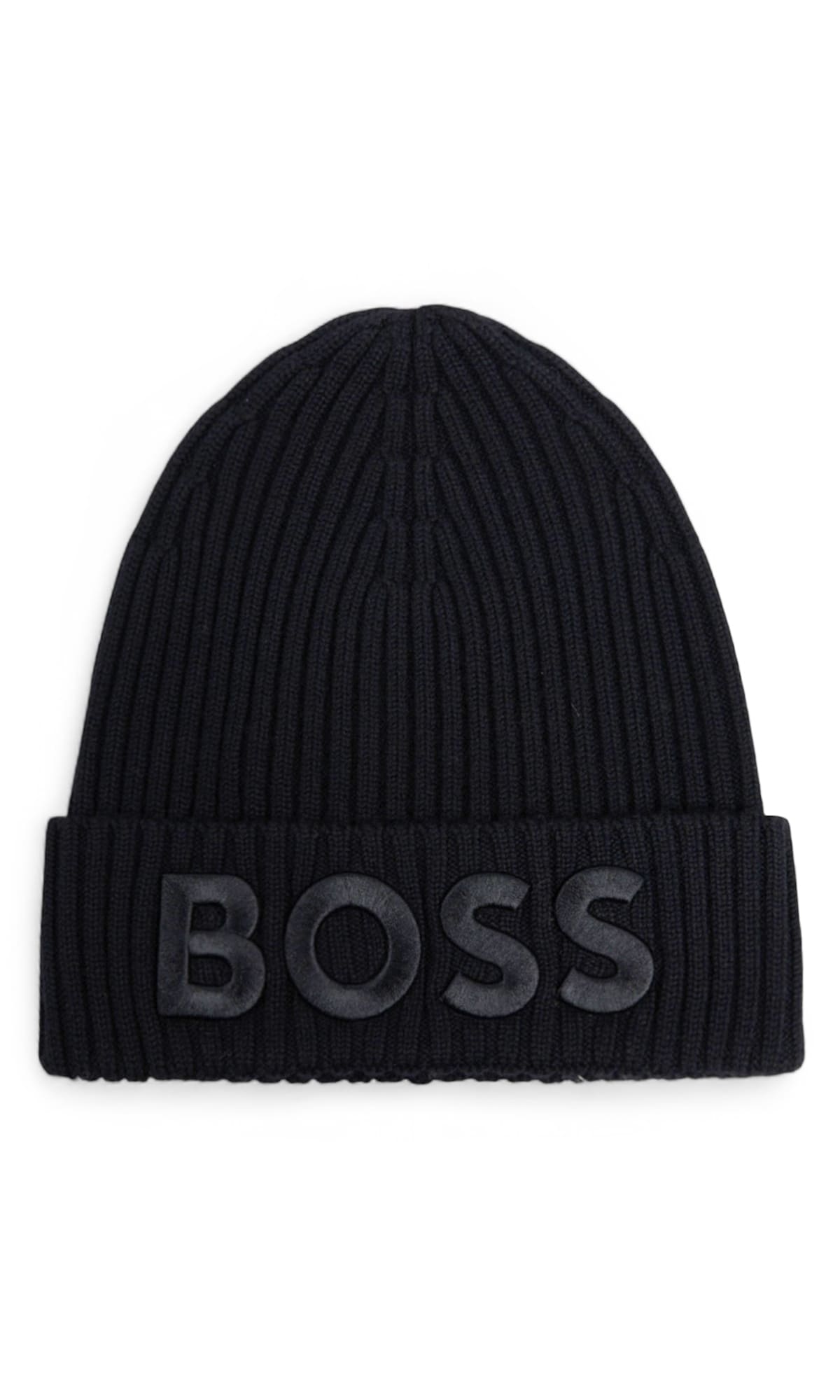 Черная шапка выполнена из мягкой пряжи. Дополнена узором в рубчик, широким отворотом и вышитым логотипом BOSS спереди. Лаконичная теплая шапка с фирменным акцентом.