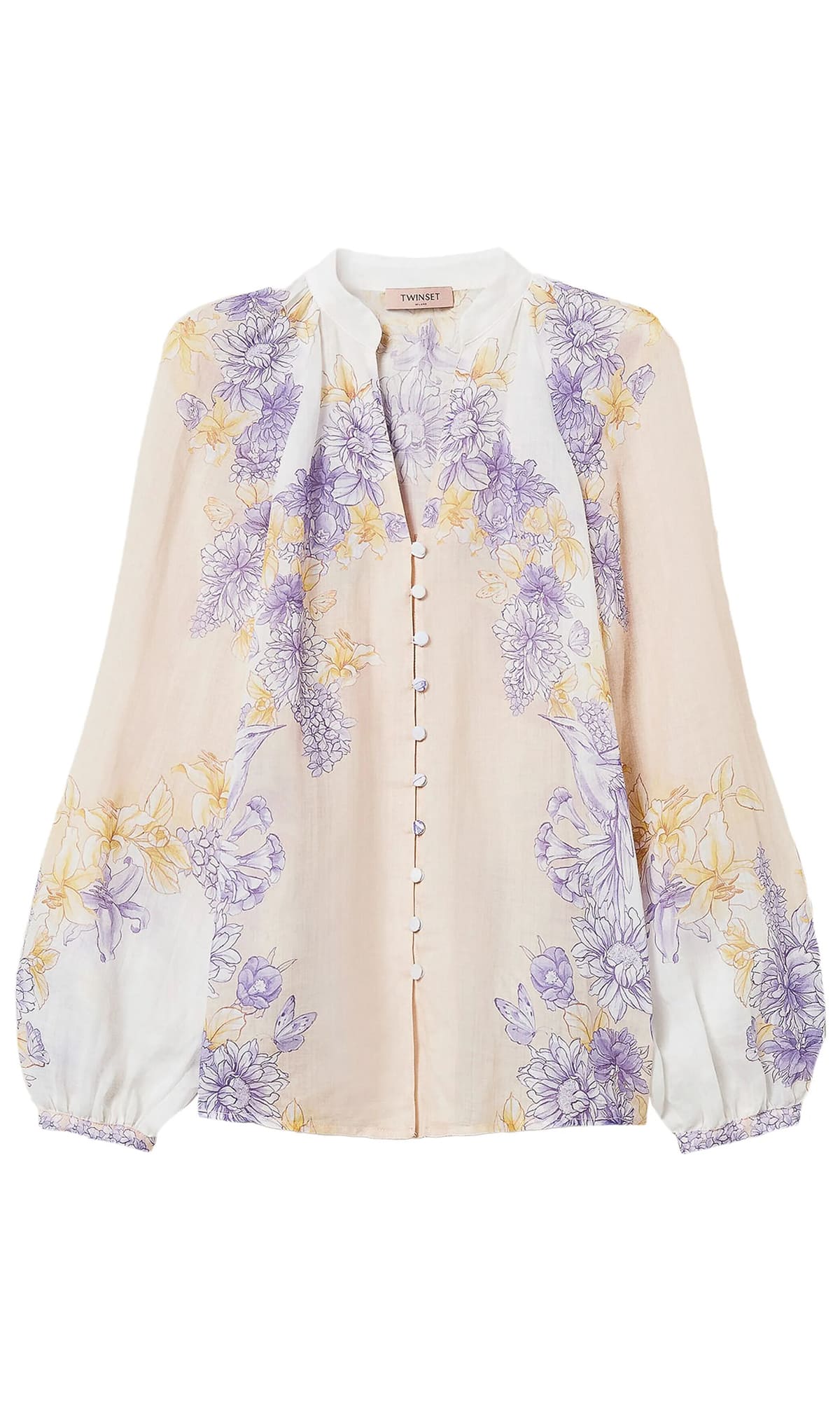 Блуза из рами с принтом