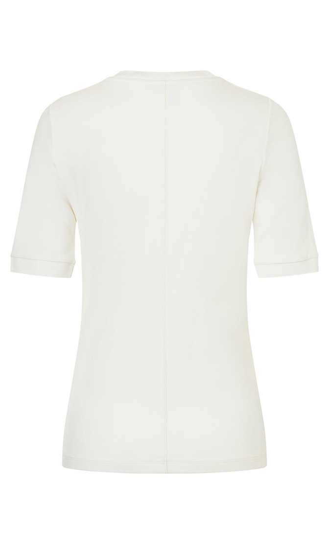 Белая футболка Alexi выполнена из мягкой ткани, сочетающей модал, хлопок и эластан. Дополнена округлым вырезом в рубчик и короткими рукавами. Такая базовая футболка прекрасно впишется в повседневный гардероб.