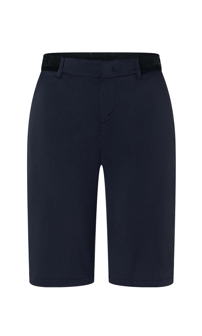 Темно-синие шорты Zita выполнены из водоотталкивающей эластичной ткани. Дополнены эластичным поясом с фирменным логотипом, а также потайными карманами на молнии по бокам. Такие шорты идеально подходят для легких летних образов.