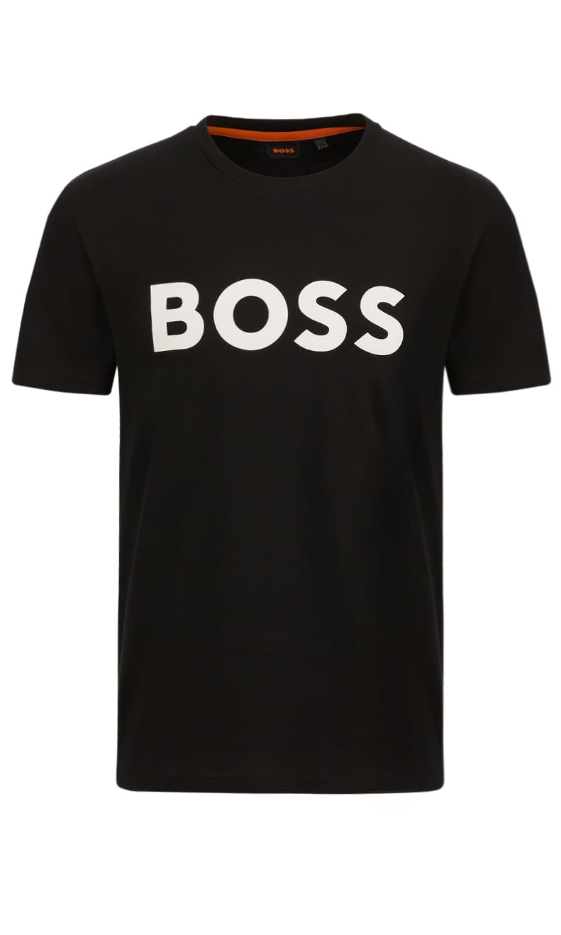 Черная футболка выполнена из натурального хлопка. Дополнена округлым вырезом, крупным контрастным логотипом BOSS на груди и короткими рукавами. Футболка прямого кроя добавит фирменный акцент в повседневные образы.